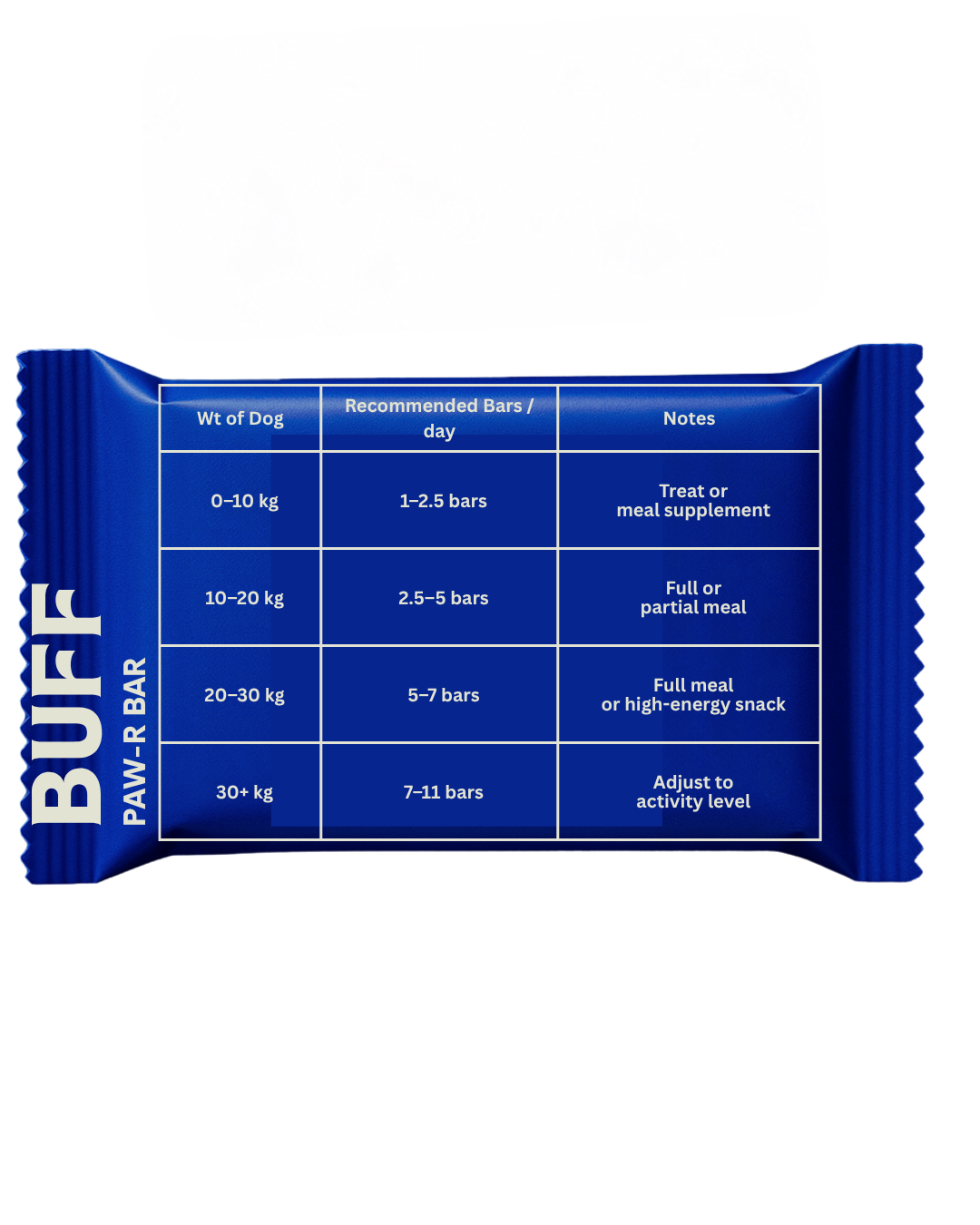 Fuel your dog’s inner beast with the BUFF Paw-R Bar – a clean, compact power snack made with real buff, nutrient-rich liver, and a boost of plant-based superfoods. Designed to energise adventures and support recovery, this bar delivers 32.5% protein and over 430 kcal per 100g, making it ideal for active dogs, post-walk refuels, or mid-day munchies.