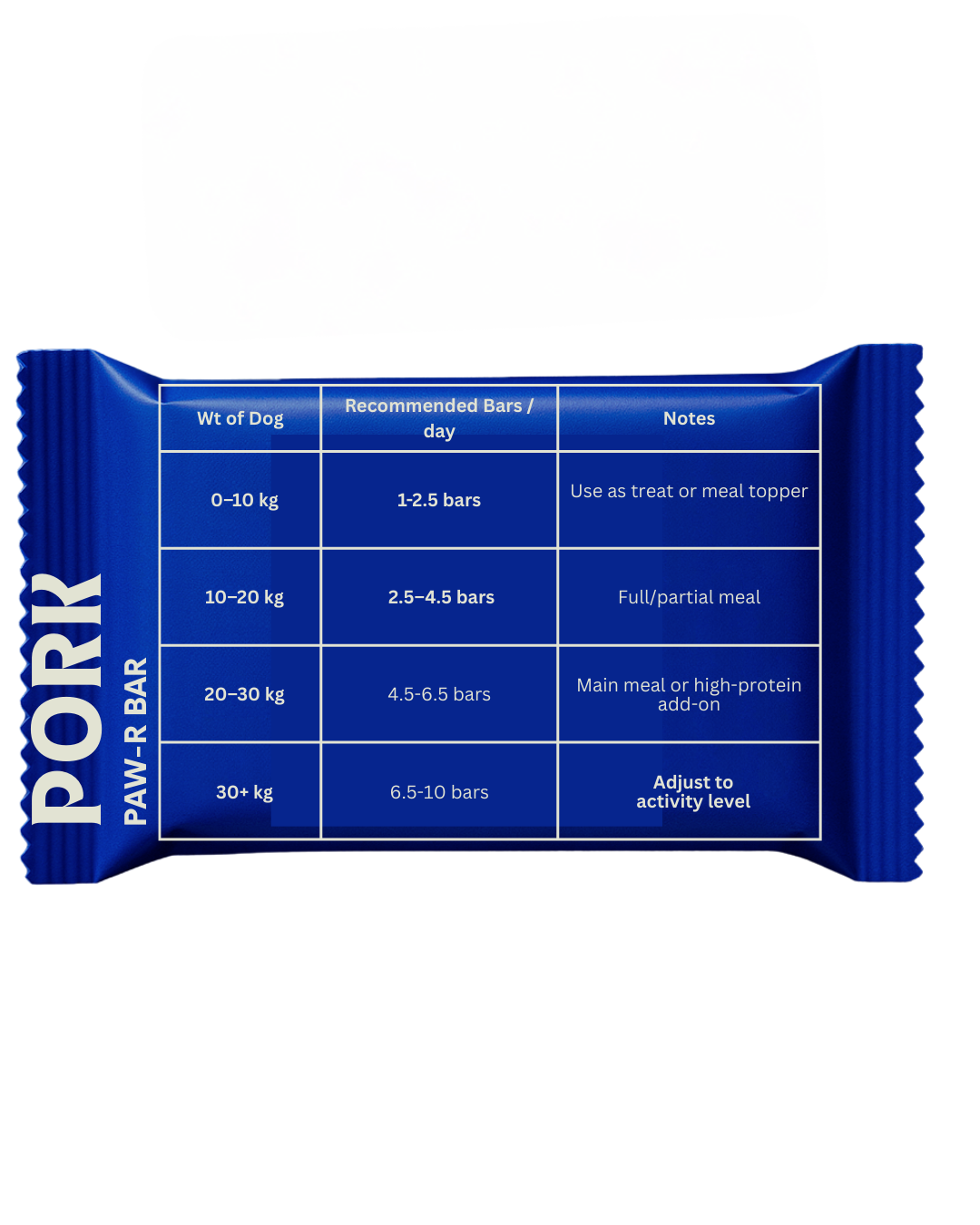 For dogs who love to move (and munch), the Pork Paw-R Bar delivers a delicious dose of fuel, recovery, and all-round wellness. Packed with real pork, liver, and functional superfoods, this bar powers up your pup with 27.9% protein and a whopping 488 kcal per 100g — ideal for high-energy days, outdoor adventures, or just a solid, clean snack.