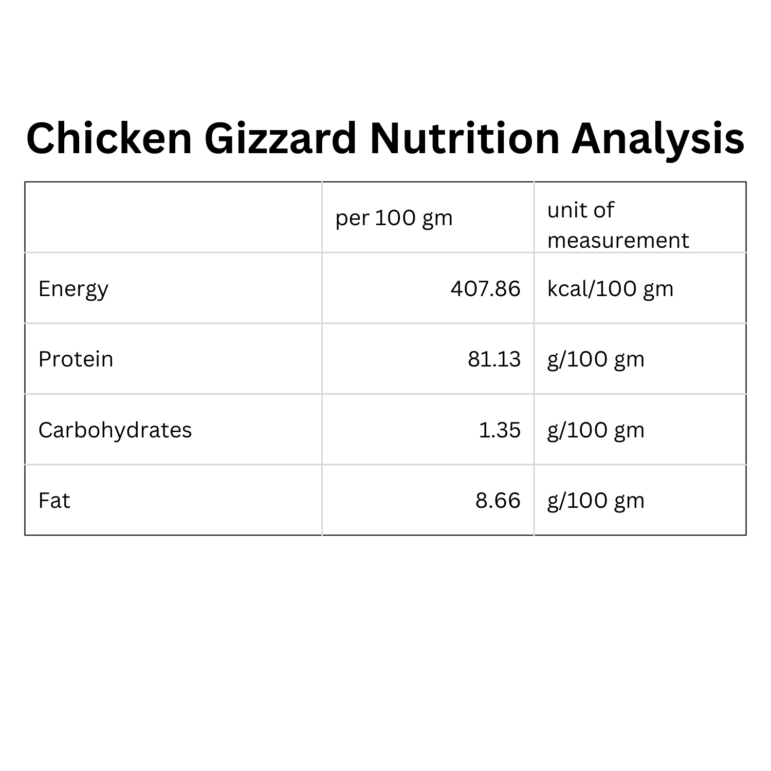 · 100% Chicken Gizzard — nothing else